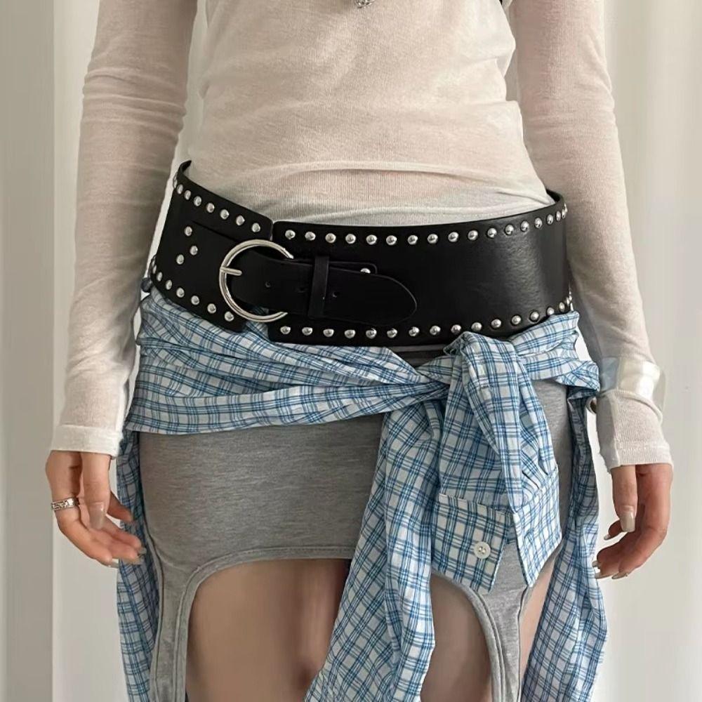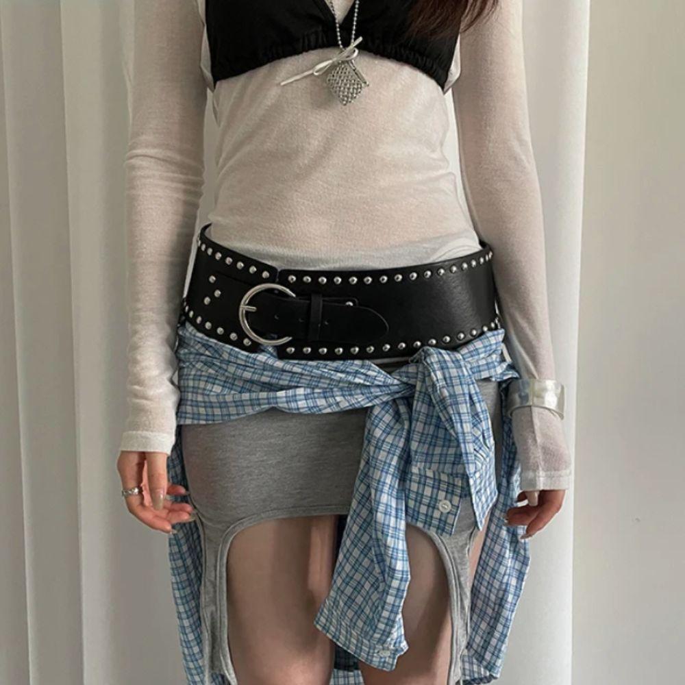Широкий женский ремень в стиле панк, готический ремень для платья, джинсовый ремень, прочный ремень с заклепками на талию, для пикантных девушек