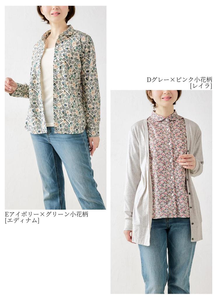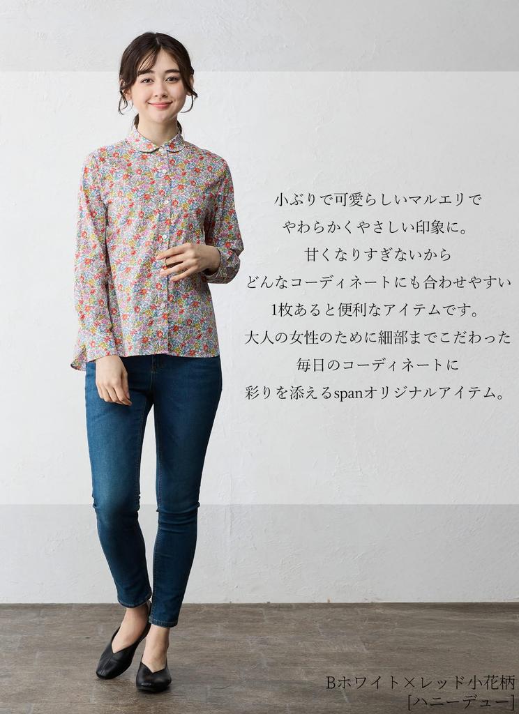 920 Сделано в Японии Рубашка Блузка Топ с круглым воротником Liberty Длинный рукав Tana Lawn A Белый x Желтый Мелкий цветочный [SPAN] Женская (М, Узор)