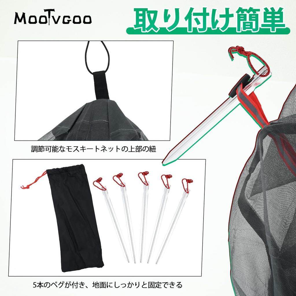 [Легко настроить] Его можно настроить двумя способами: "1" подвесив его за верхнюю петлю на ветку, или "2" используя только одну трекинговую палку для поддержания центра.