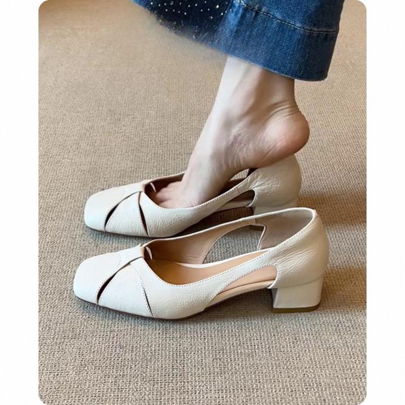 Сандалии с квадратным носком и вырезами, женские клоги в ретро-стиле с неглубоким вырезом, дышащие, на массивном каблуке, одинарные туфли