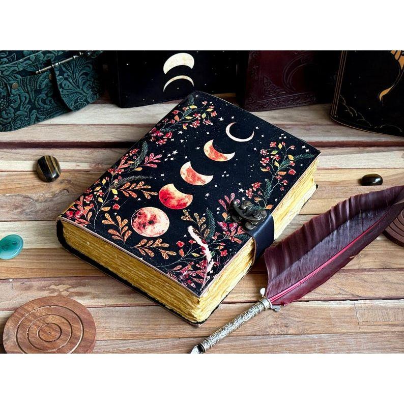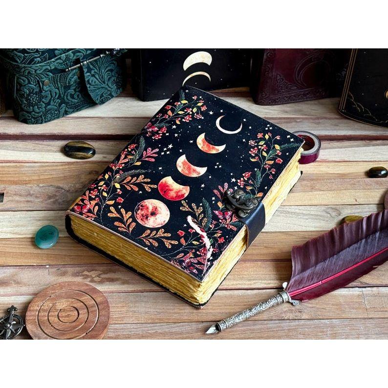 Винтажный кожаный журнал с фазами луны для мужчин и женщин, 200 страниц состаренной бумаги ручной работы с неровным краем, кожаный скетчбук, рождественский подарок