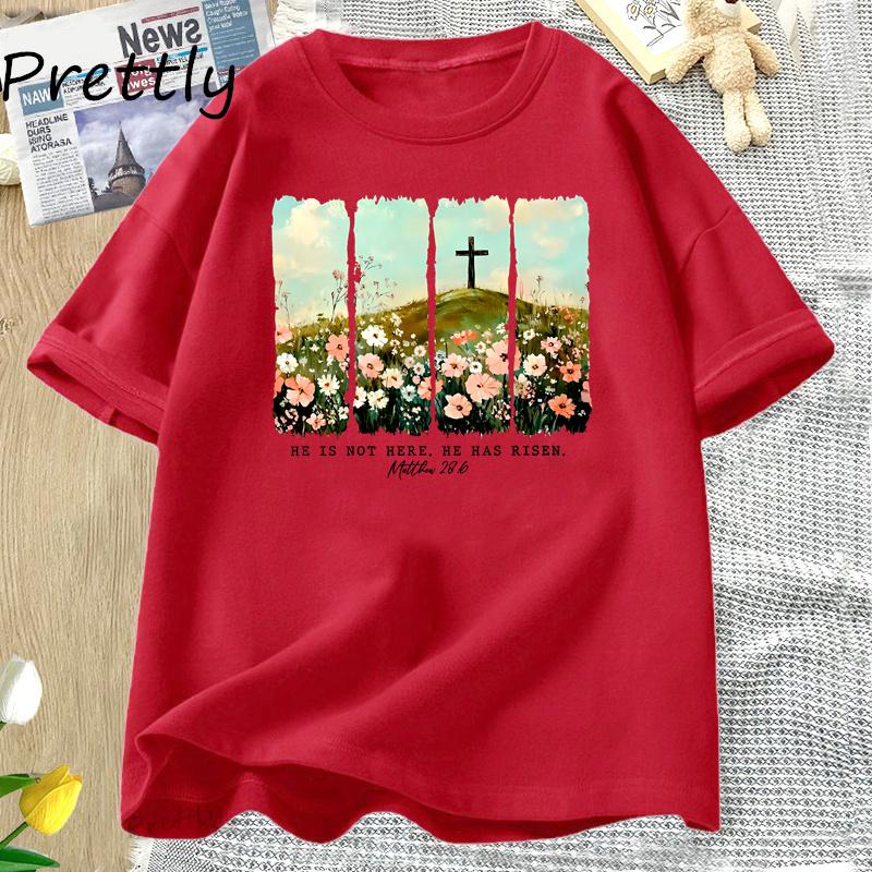 Он Воскрес Футболка с принтом полевых цветов Весенние Пасхальные Дизайны Футболка Женская Модная Пасхальная Христианская Иисус Футболка Женская Одежда