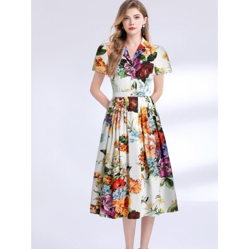 Летние винтажные платья макси с цветочным принтом, женские, с коротким рукавом, блейзерным воротником, длинные, для вечеринок