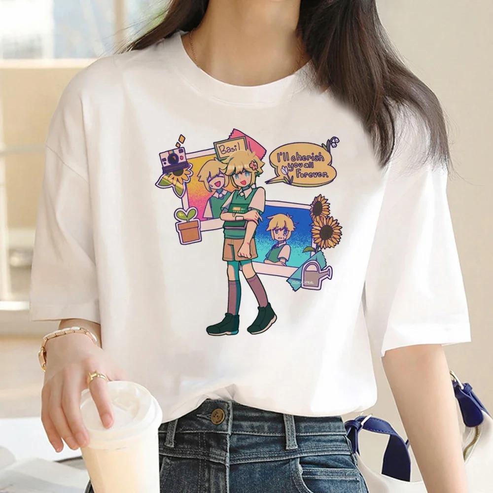 ZX TEE Футболка Аниме Омори Харадзюку Женская Футболка с Круглым Вырезом Белая Базовая Футболка Эстетичная Одежда Аксессуары Короткий Рукав Круглый Вырез Женская Летний Повседневный Топ