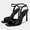 Черный лакированный кожаный ремешок Дизайнерские туфли на высоком каблуке Гладиаторские сандалии Женская летняя мода Квадратный открытый носок Вечерняя обувь для вечеринки и выпускного