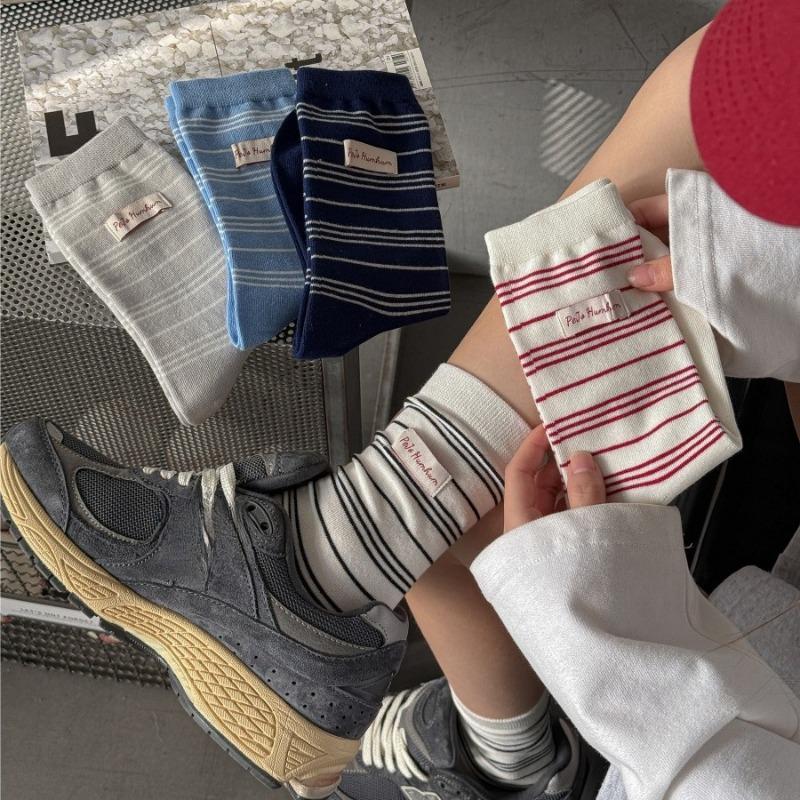 Женские весенне-осенние милые полосатые бесшовные носки-гольфы из чистого хлопка