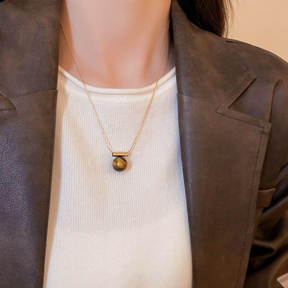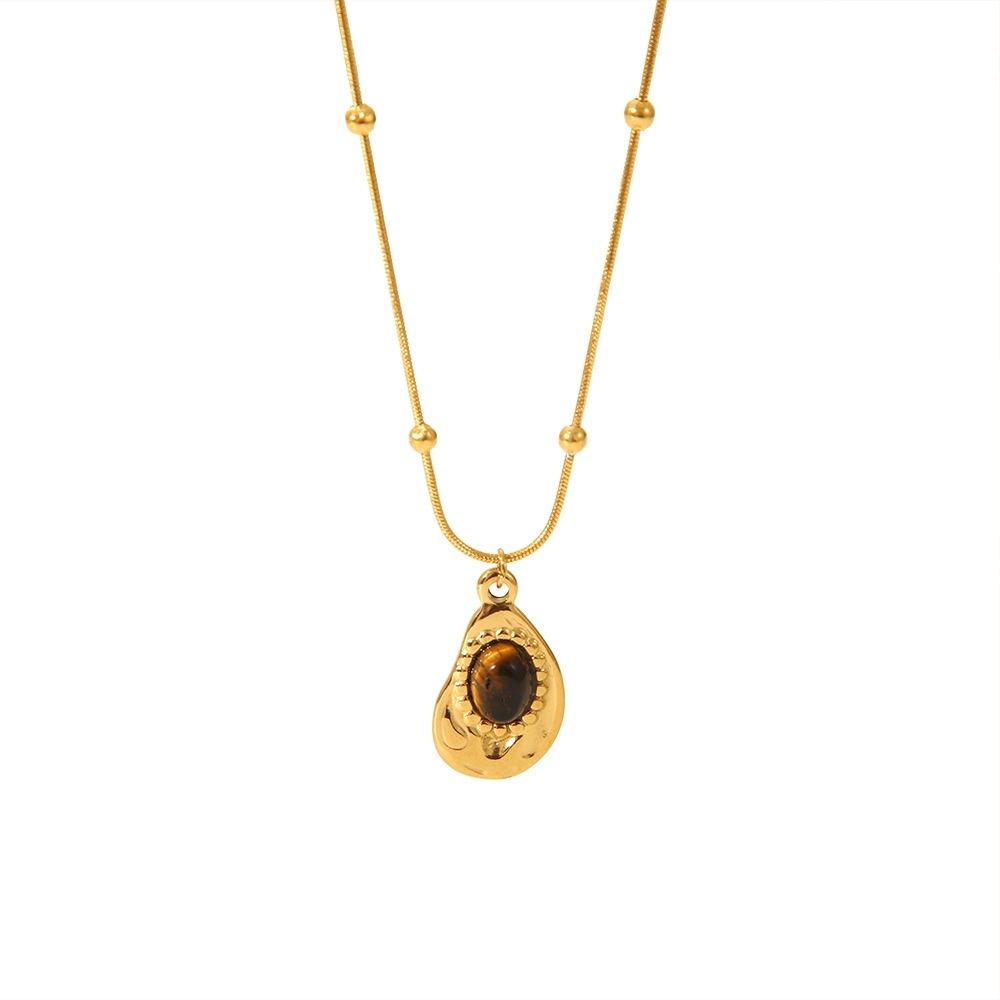 Винтажное ожерелье из камня Тигровый глаз, неправильное сердце, цепочка для ключицы, простое металлическое ожерелье, женское