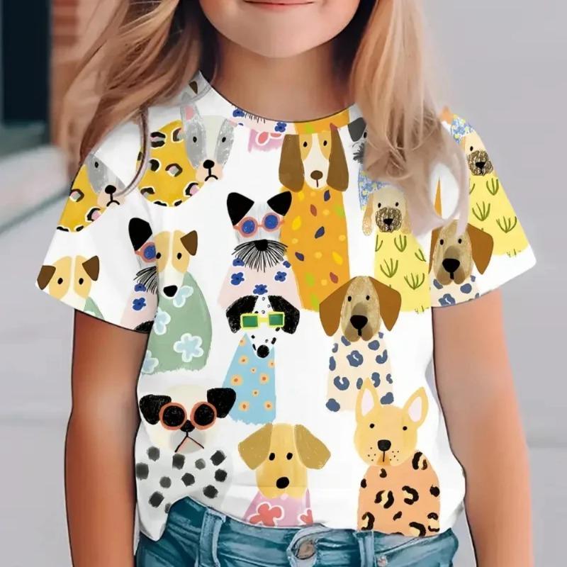 Милые зверюшки 3D-принт Графические футболки для детей Повседневная футболка с круглым вырезом для девочек Модная одежда для мальчиков и девочек Футболки