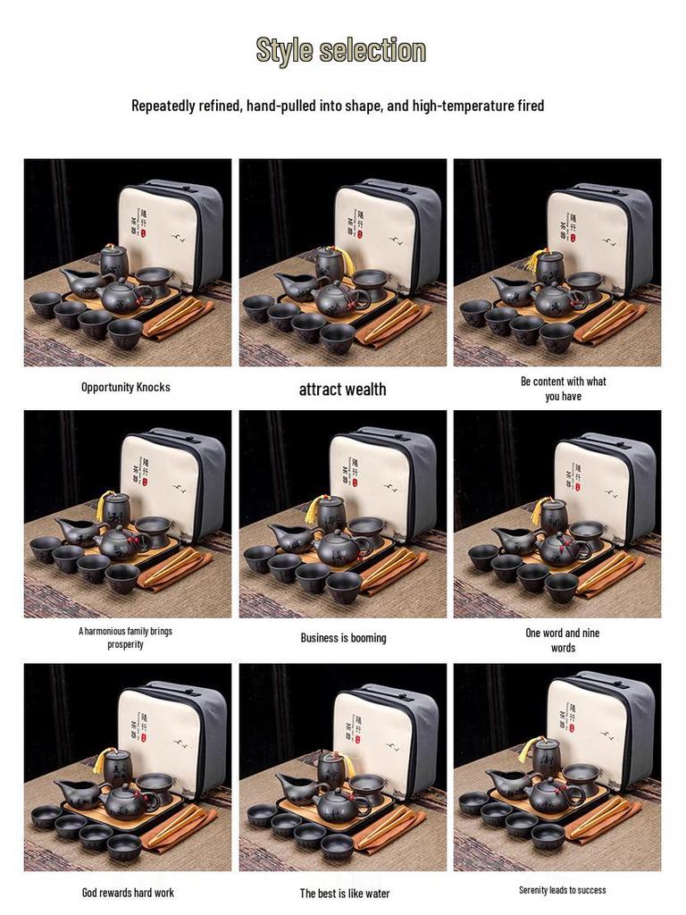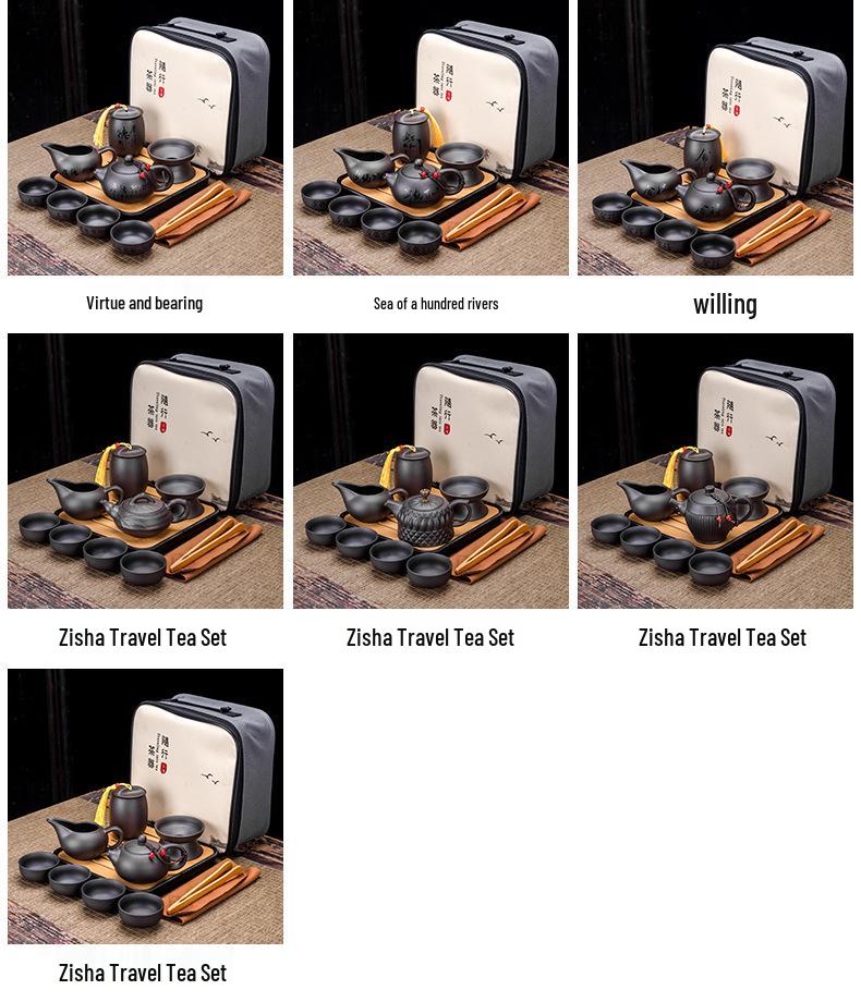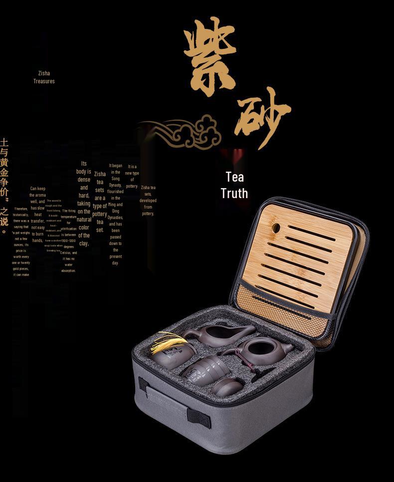 Портативный набор чайника Сиши из фиолетовой глины с кожаной сумкой и чайным подносом для дома, путешествий или бизнеса