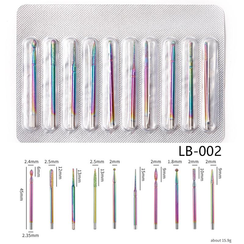 2. 10шт Гвоздевые сверла Набор, включая различные типы алмазных сверл. Этот набор включает в себя почти все инструменты для ногтевых сверл, которые вам могут понадобиться для нейл-арта. Подходит для профессионального мастера маникюра или новичка в нейл-арте.