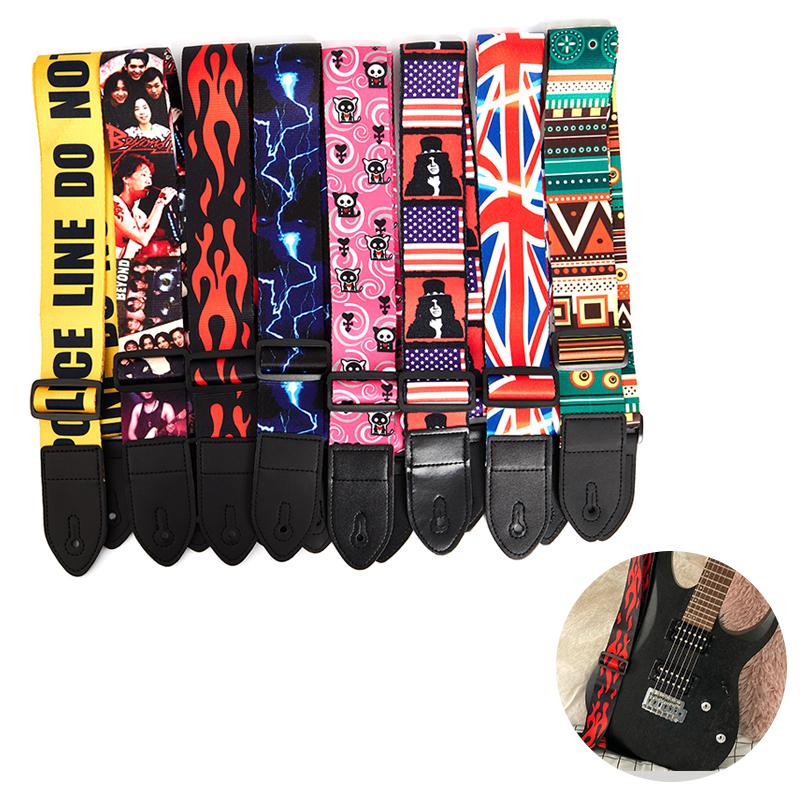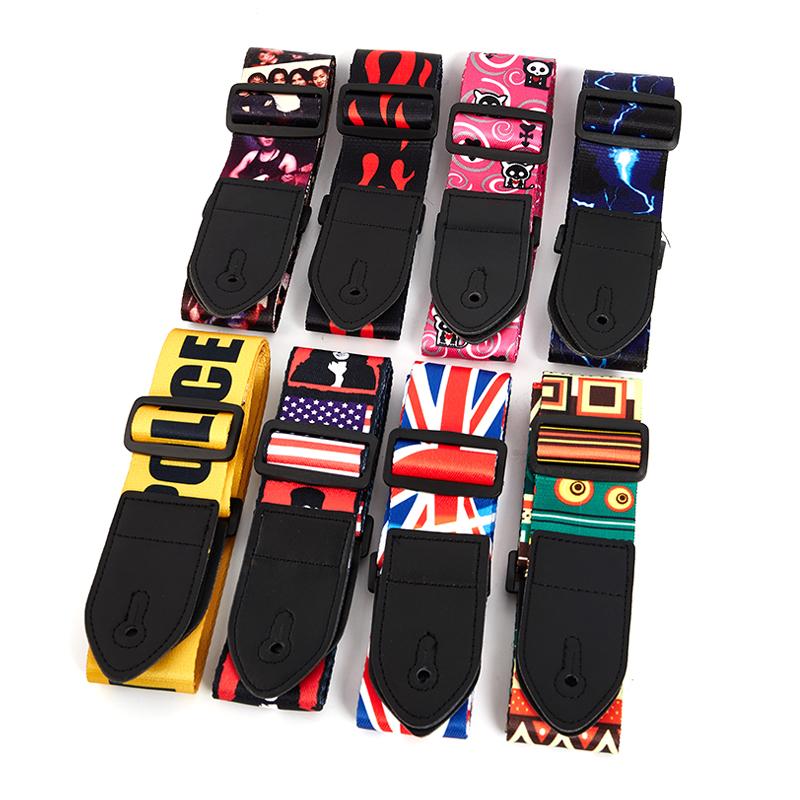 Гитарный ремень, многоцветные ремни, регулируемые нейлоновые гитарные ремни с красочной печатью