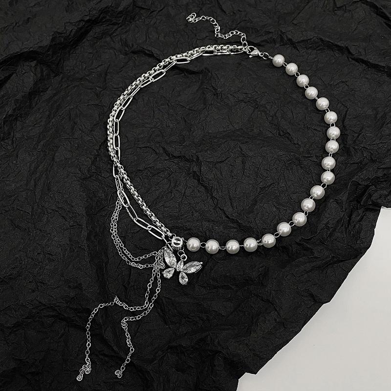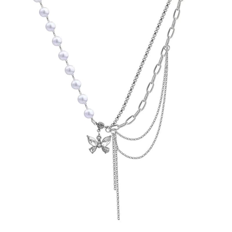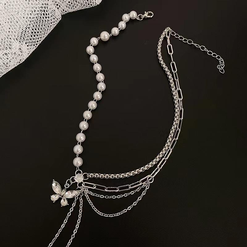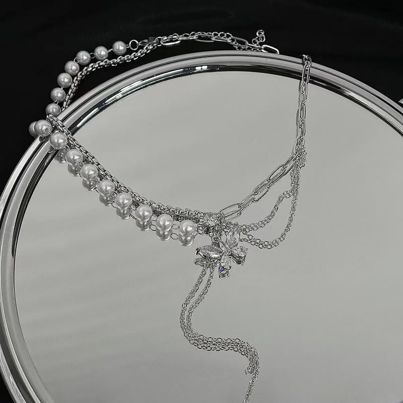 Блестящее ожерелье-бабочка Изысканное многослойное жемчужное ожерелье-чокер для женщин Тренд 2022 Эстетичные украшения