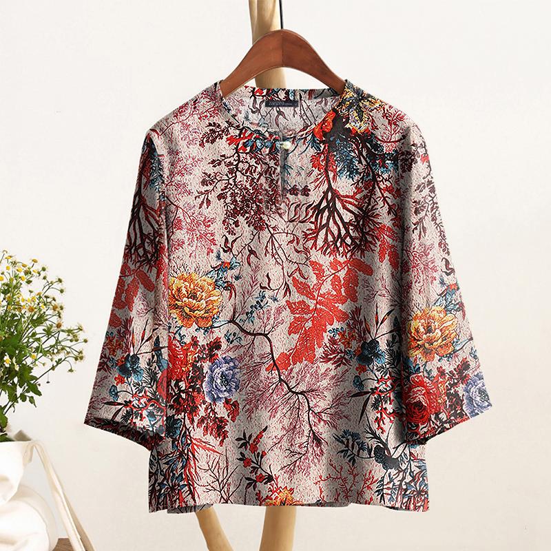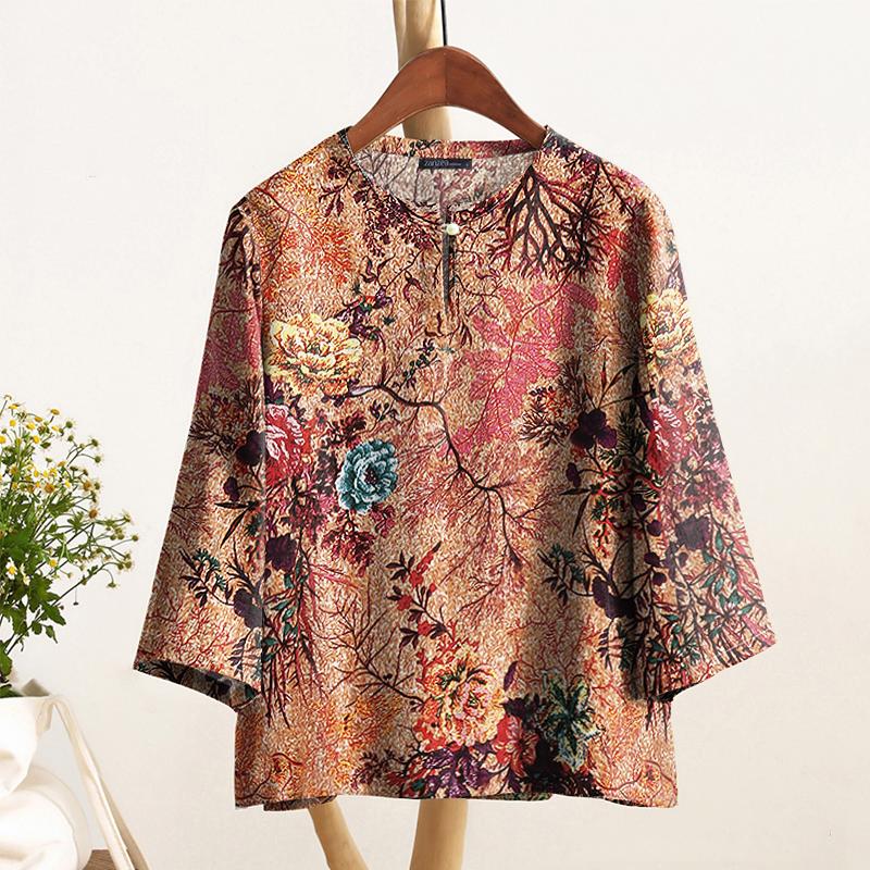 ZANZEA Женская повседневная блузка с круглым вырезом и рукавом 3/4 с этническим принтом
