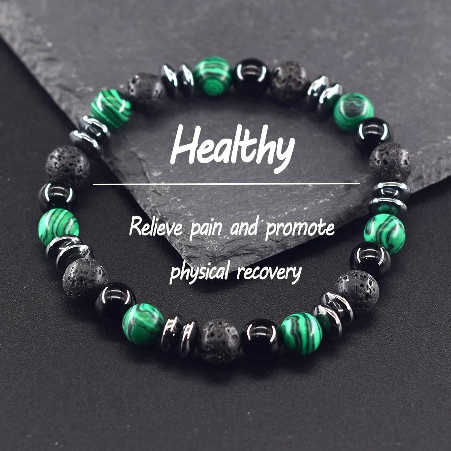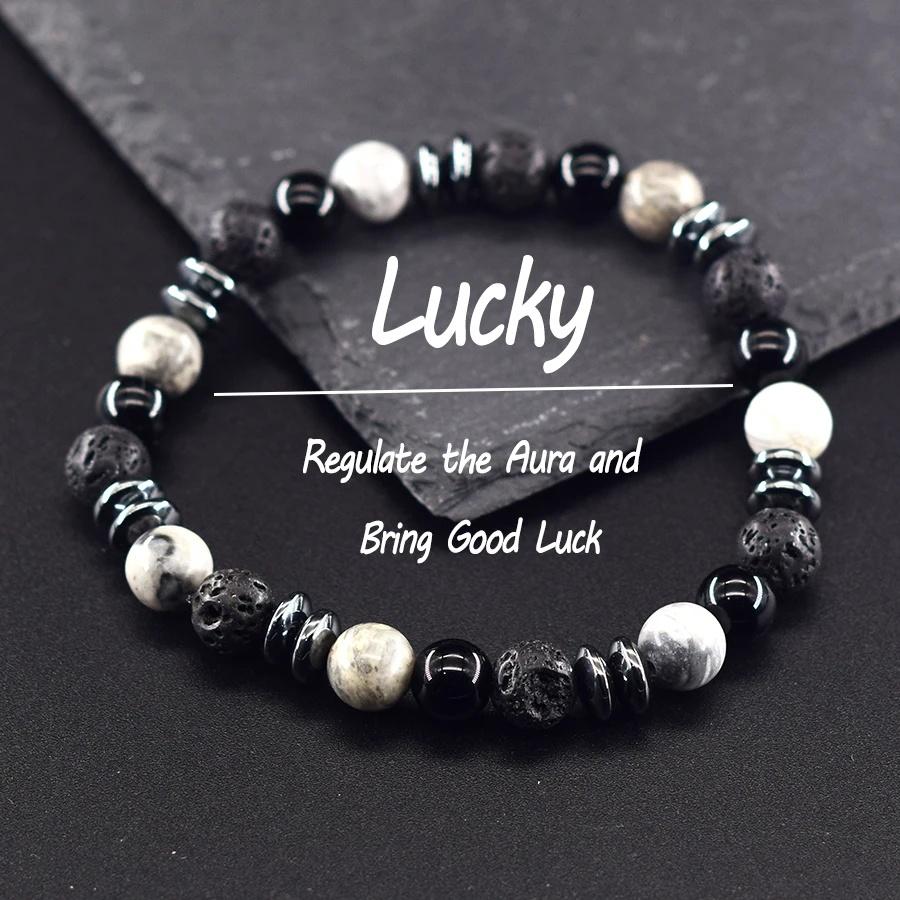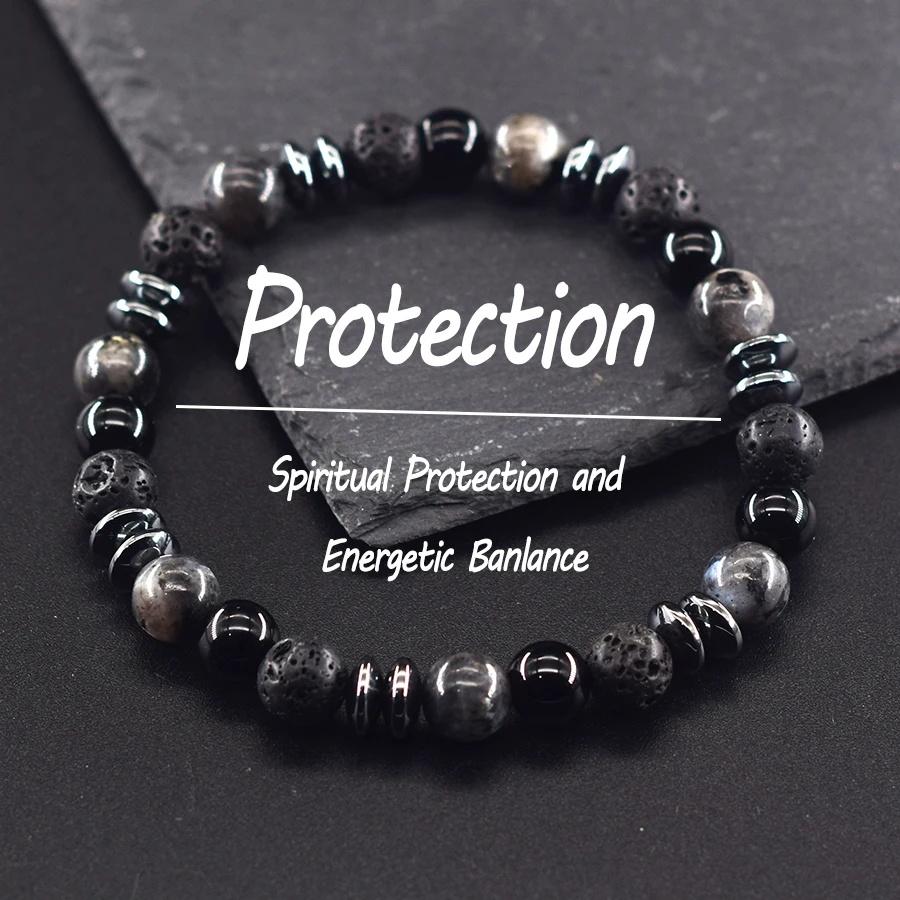 Классический черный браслет из бусин натурального лабрадорита и вулканического камня для женщин и мужчин, духовная защита и энергетический баланс, ювелирное изделие
