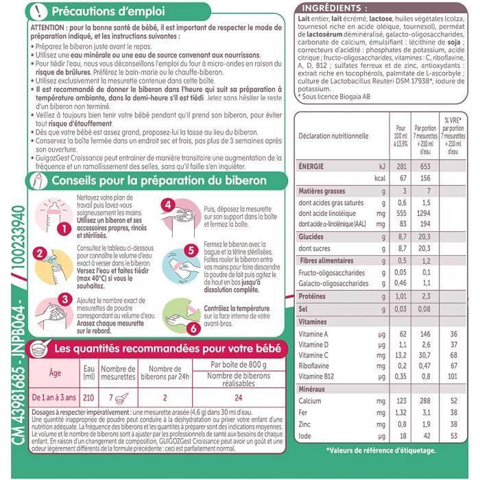 Guigoz GuigozGest Croissance Lait 3ème Âge 800g
