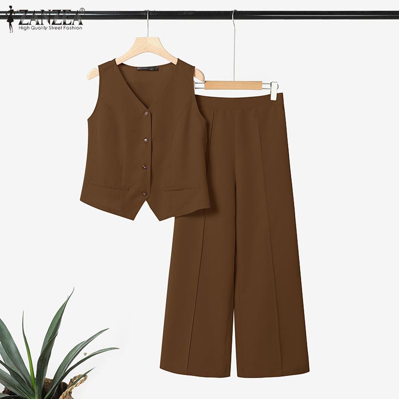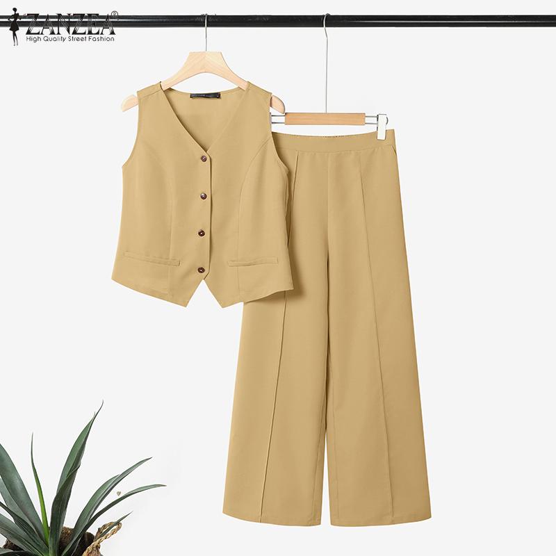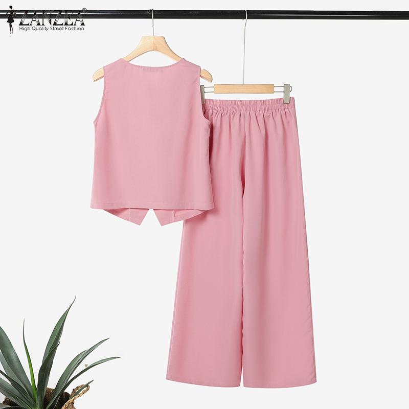 ZANZEA Женские безрукавки, топы и брюки, летние комплекты из двух частей