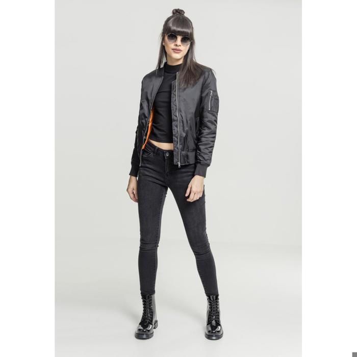 Женский бомбер - Urban Classic - Базовый - Черный - Карман на молнии - Оранжевая подкладка