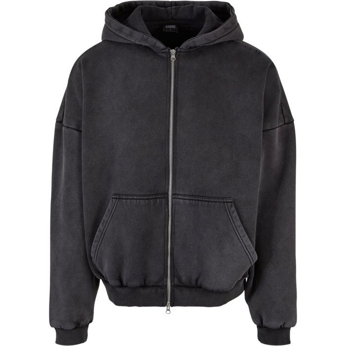 Urban Classics - Толстовка с капюшоном на молнии в стиле 90-х, с эффектом сильной стирки камнями