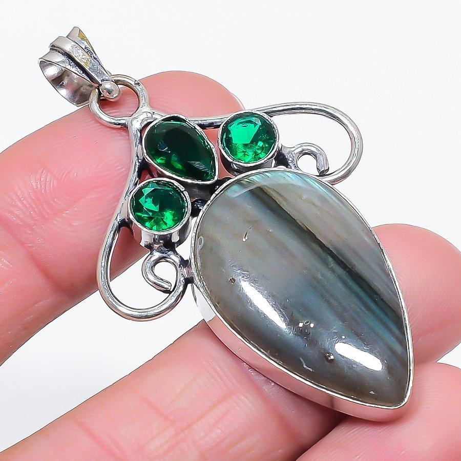 Natural Labradorite, Diopside 925 Sterling Silver Jewelry Pendant 2.29" u3f74