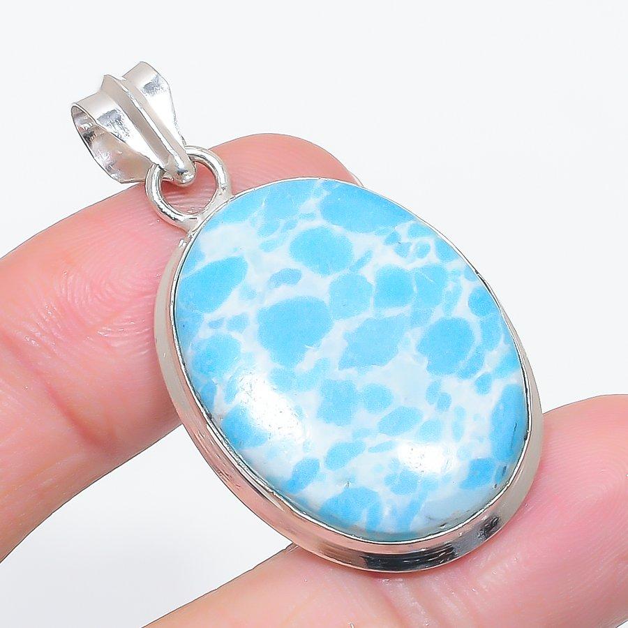 Натуральный Ларимар Драгоценный камень Ручная работа 925 Стерлинговое серебро Ювелирная подвеска 1,81"