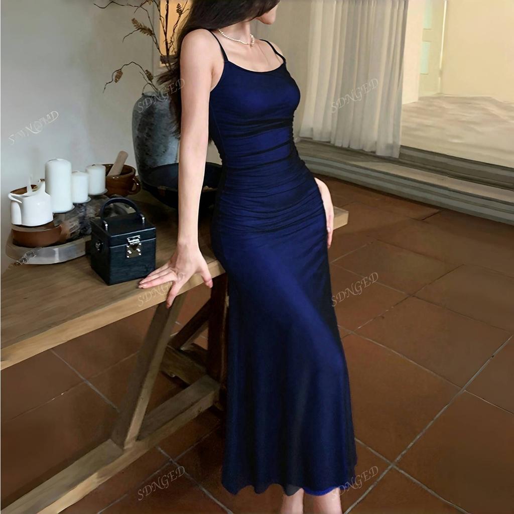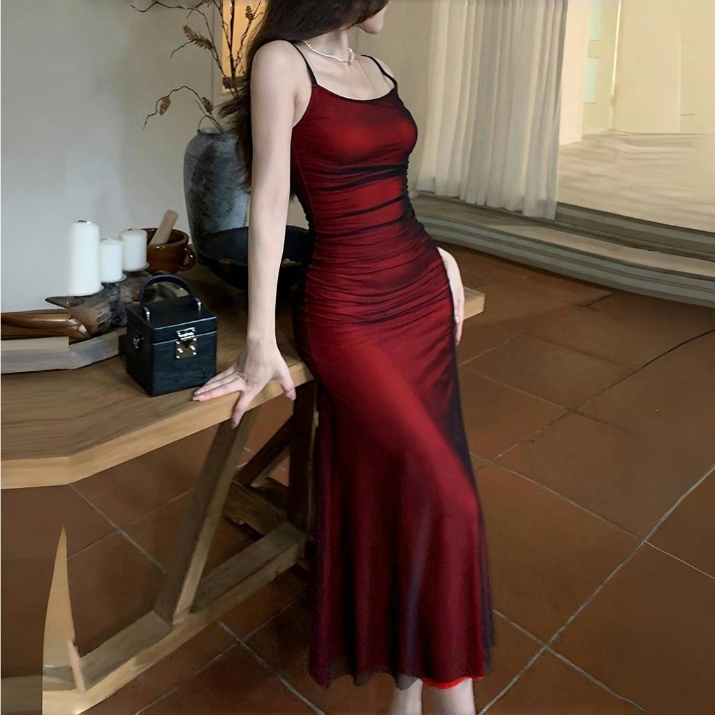 LYRIA Женское платье Красное Паста на бретелях Плиссированное платье на бретельках Приталенное и элегантное Вечернее платье Длинное
