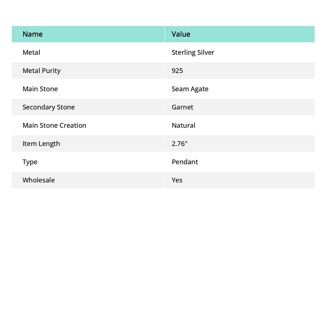 Натуральный шовный агат, гранат 925 стерлинговое серебро ювелирная подвеска 2,76"