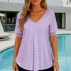 Женская однотонная футболка с V-образным вырезом, свободного кроя, с короткими рукавами и плиссировкой