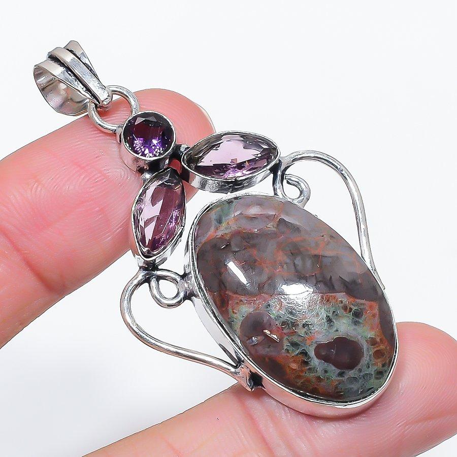 Натуральный окаменелый узор «растрескавшаяся грязь», аметист, подвеска из стерлингового серебра 925 пробы 2,36"