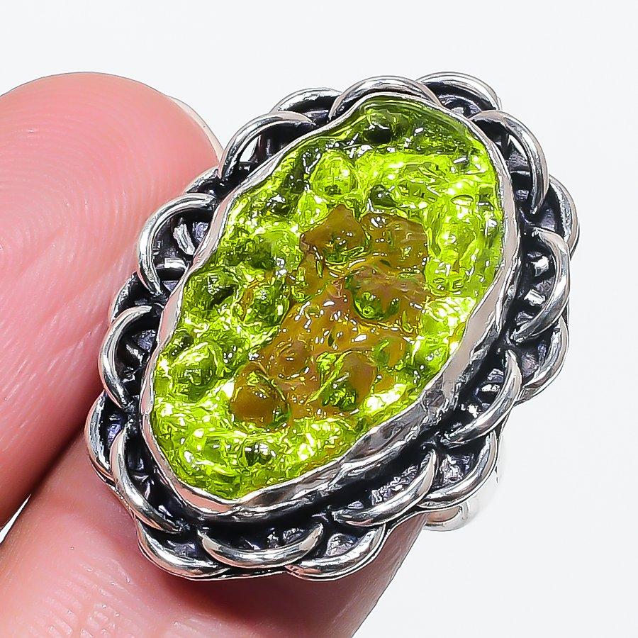 Натуральный Молдавит Кварц Драгоценный Камень Серебро 925 пробы Ювелирное Кольцо Размер 7.5 w5Y88