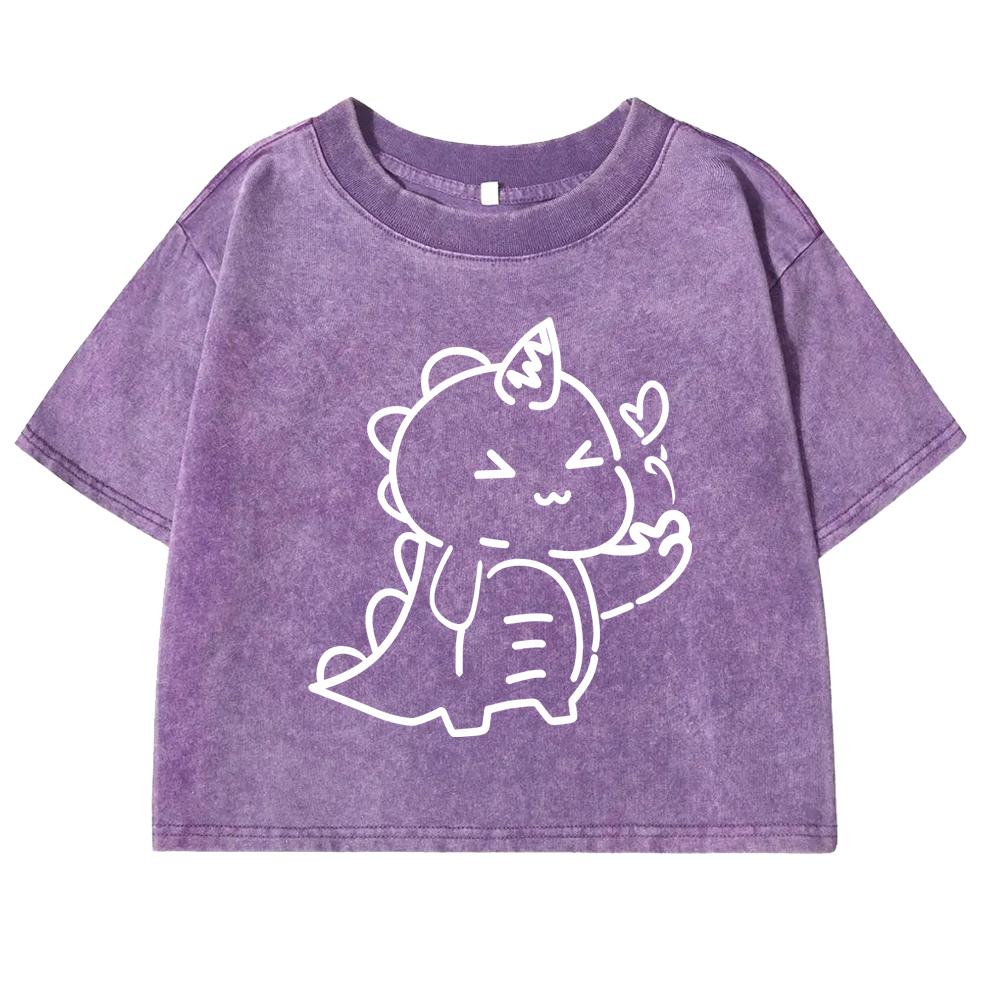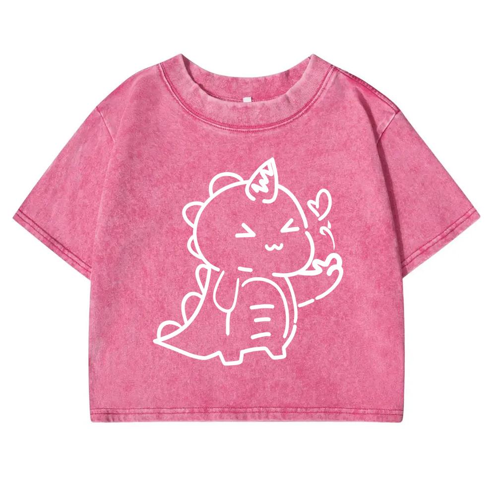 Любовь Принт Динозавра Ретро Футболка Женская Повседневная Выстиранная Футболка Хлопок Уличные Укороченные Футболки Короткий Рукав Для Женщин