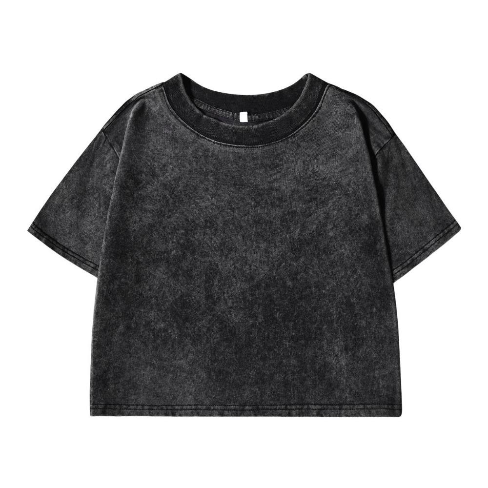 Женская короткая футболка с эффектом стирки, летняя дышащая футболка, уличные укороченные топы, крутая повседневная винтажная одежда с эффектом потертости
