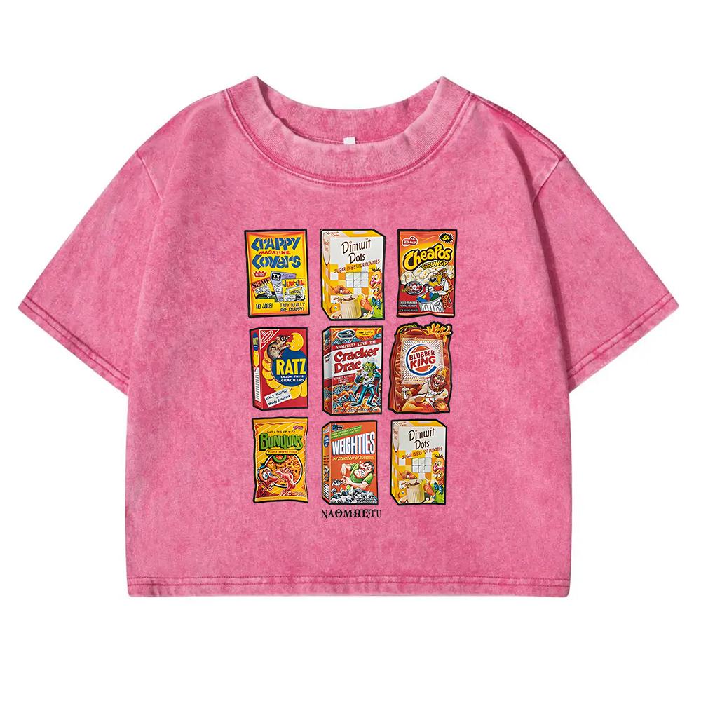 Ретро Футболка с принтом закусок для женщин, выстиранная летняя футболка из хлопка с коротким рукавом, облегающая и удобная