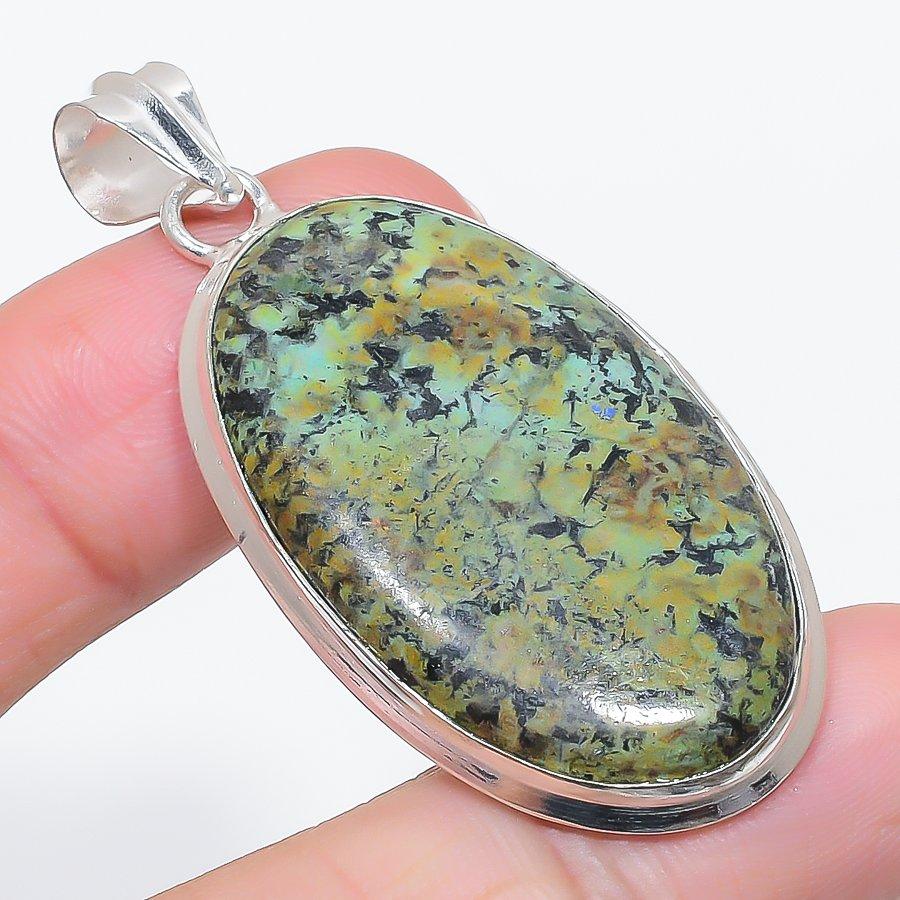 Натуральная тибетская бирюза 925 стерлинговое серебро Ювелирная подвеска 2,21"