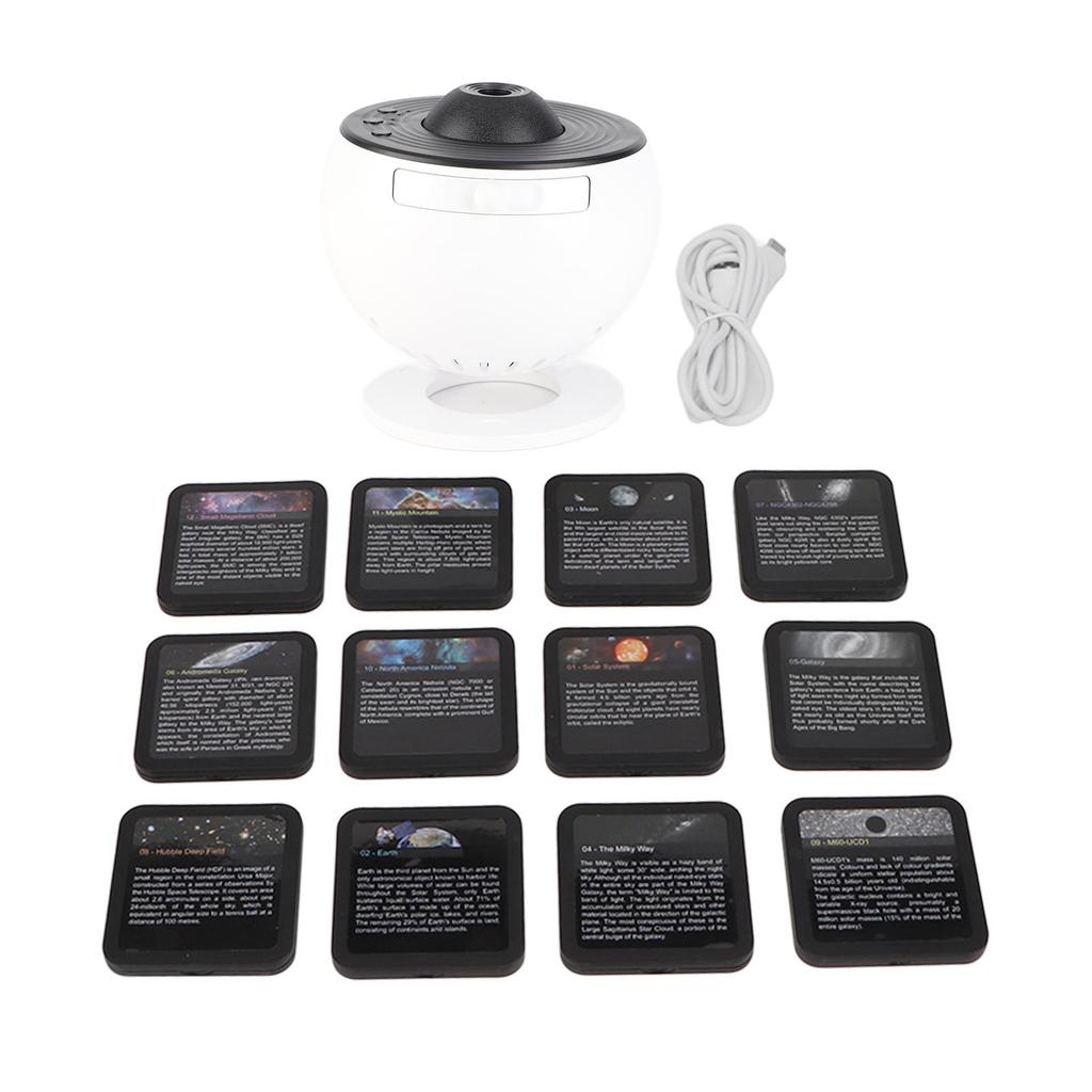 2. 12 тем: Звездный проектор имеет 12 тем: Солнечная система, Земля, Луна, Млечный Путь, Галактика, Звезда Андромеды, NGC4302 NGC4298, Наблюдаемая Вселенная, M60 UCD1, Североамериканская туманность, Мистическая гора и Малая Магелланова туманность.