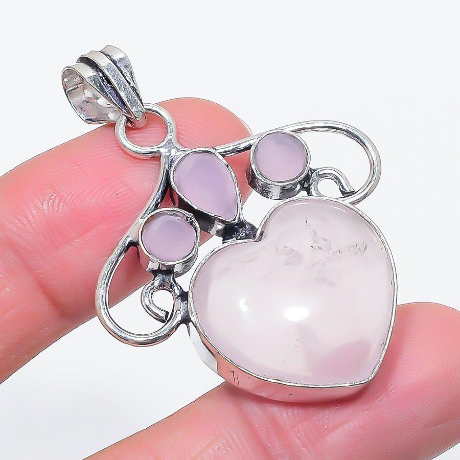 Натуральный розовый кварц, халцедон 925 стерлинговое серебро ювелирная подвеска 1,89"
