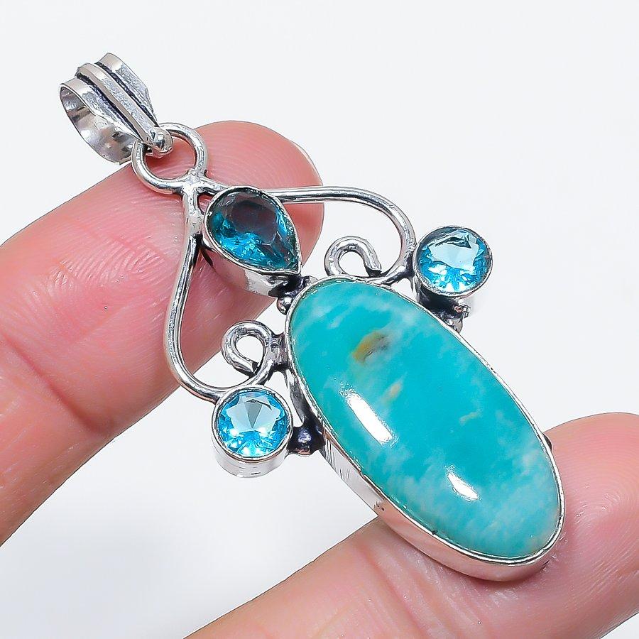 Натуральный Амазонит, Топаз Драгоценный камень 925 Стерлинговое Серебро Ювелирное Украшение Подвеска 2.29"
