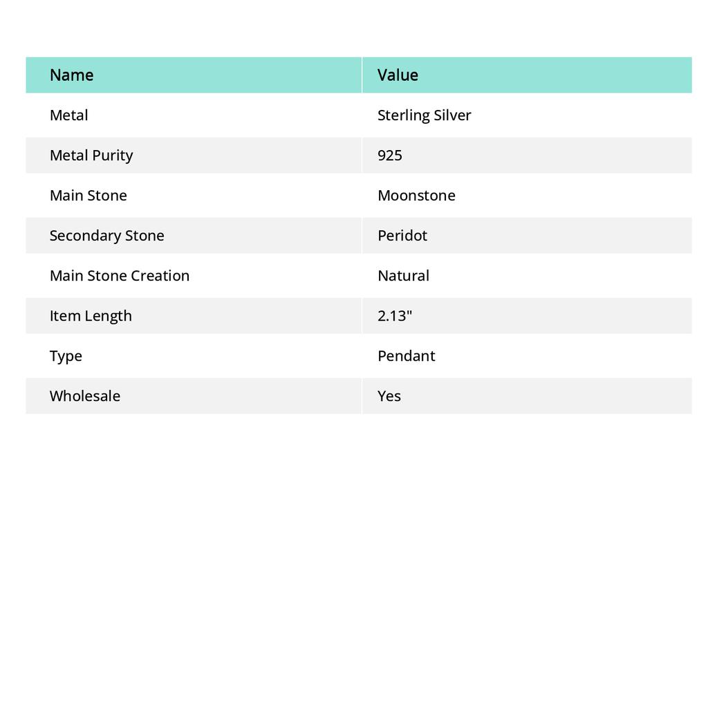 Natural Moonstone, Peridot 925 Sterling Silver Jewelry Pendant 2.13" Y5w69