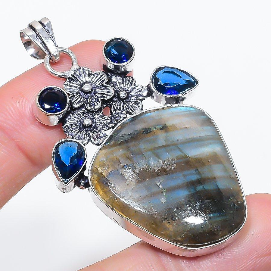 Natural Labradorite, Topaz 925 Sterling Silver Jewelry Pendant 2.36 G3d88 — купить товар онлайн с бесплатной доставкой по всему миру!