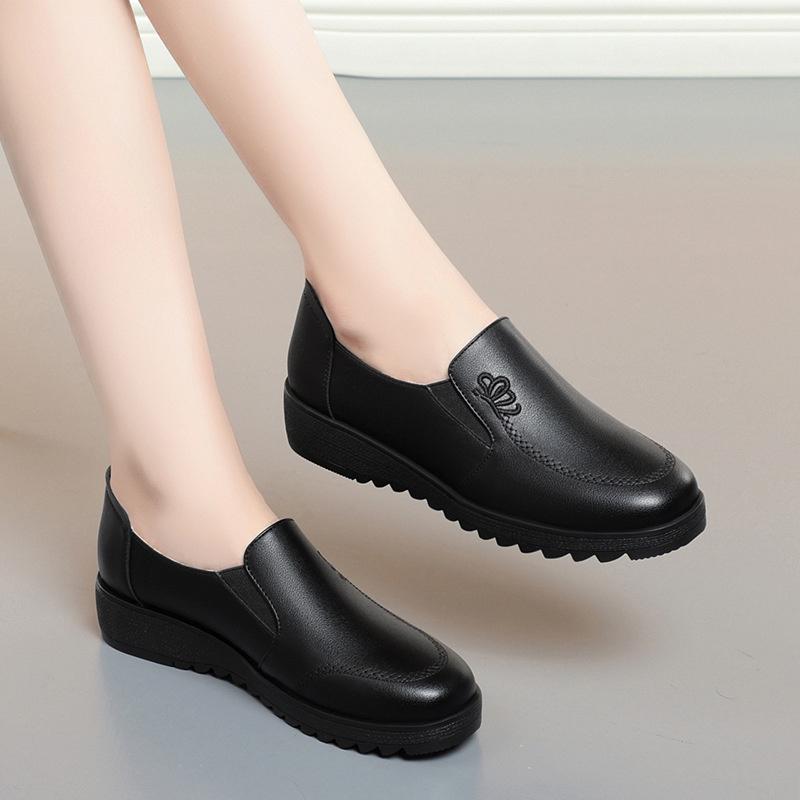 Новые весенне-осенние женские туфли-балетки на плоской подошве, мягкие лоферы с круглым носком, повседневные кожаные туфли с плоской подошвой и нескользящей подошвой