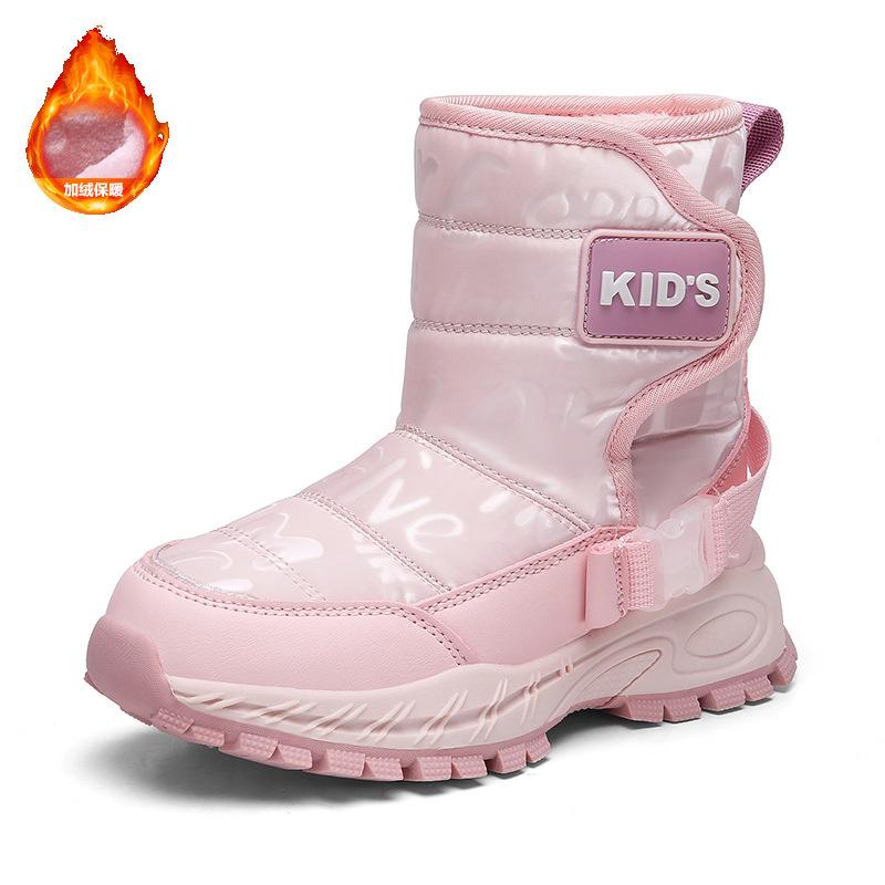 Детские ботинки Модные Зимние Теплые Плюшевые Детские Снежные Ботинки Меховые Водонепроницаемые Нескользящие Уличные Спортивные Ботильоны для Девочки