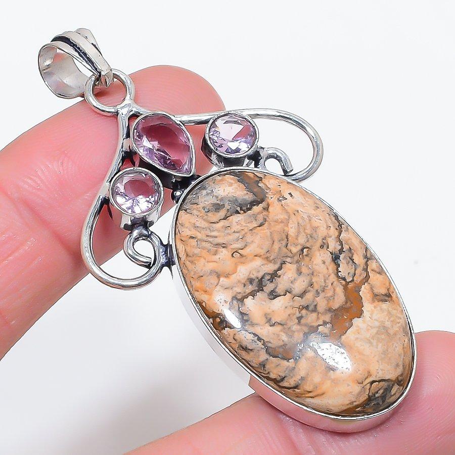 Натуральный пейзажный яшма, кунцит 925 стерлинговое серебро ювелирный кулон 2,52" N0t93