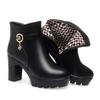 Осень Зима Теплые Толстая Подошва Женские Хлопковые Сапоги Бархатные Водонепроницаемые Блочный Высокий Каблук Офисная Модель Ботильоны