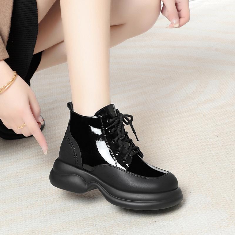 Бархатные Утолщенные Ботинки на Платформе Готические Осенне-Зимние Ботинки на Толстом Каблуке Новые Женские Ботильоны из Мягкой Лакированной Кожи