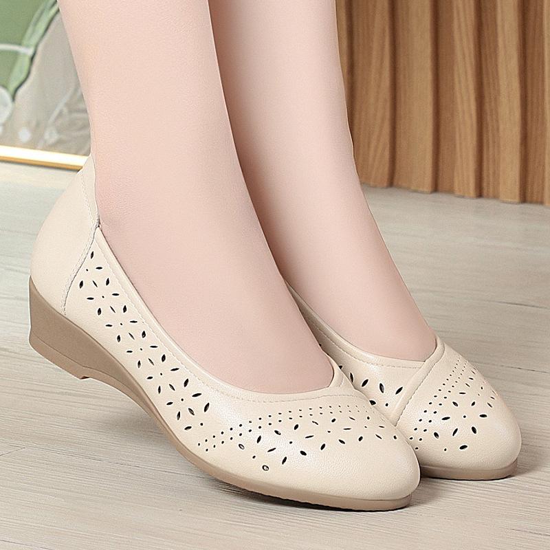 Туфли для мам на мягкой подошве, летние сандалии с отверстиями, удобная кожаная обувь из мягкой кожи, дышащие одинарные туфли, для среднего и пожилого возраста