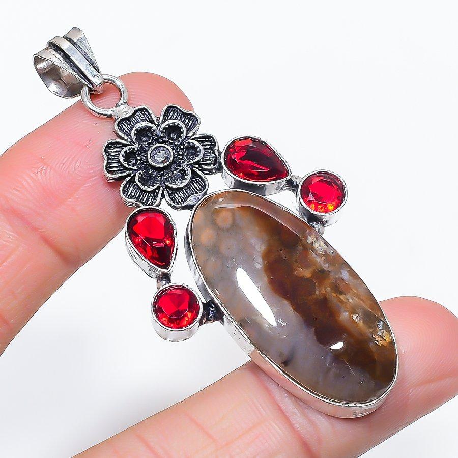 Натуральный ископаемый коралл, гранат 925 стерлинговое серебро ювелирная подвеска 2,64"