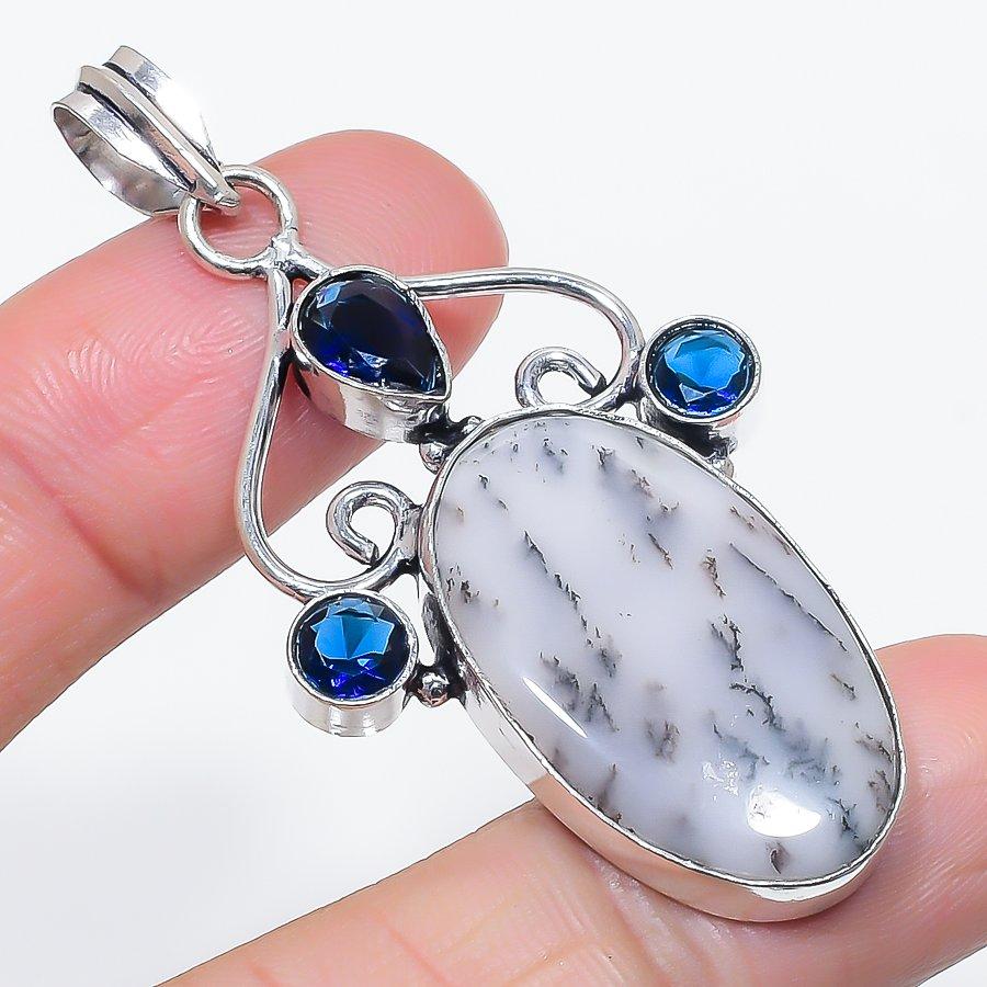 Натуральный дендритовый опал, топаз, ювелирная подвеска из серебра 925 пробы, 2,36"