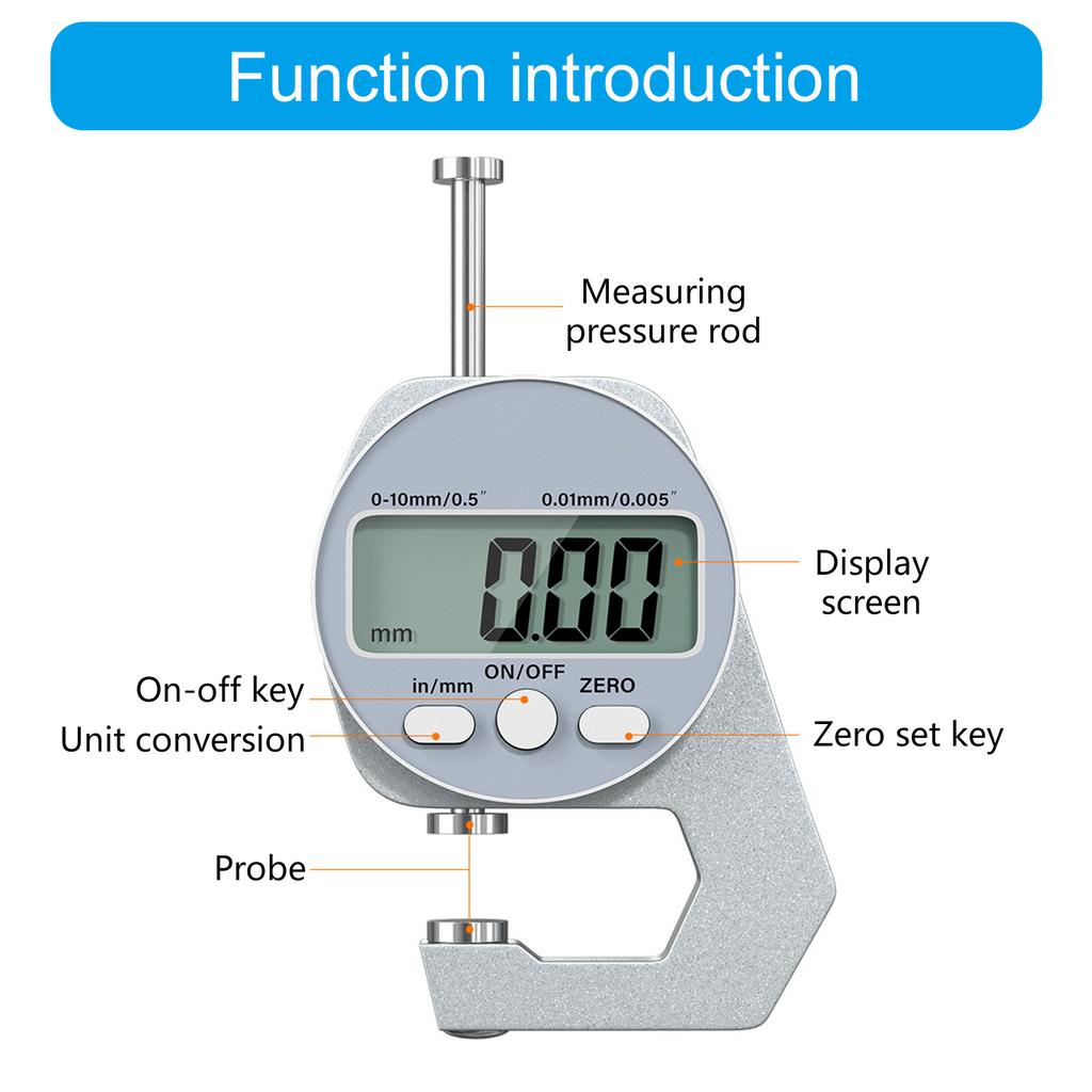 Изготовленный из прочного алюминиевого сплава и железа, этот толщиномер имеет широкий диапазон измерений от 0 до 12,7 мм. (от 0 до 0,5 дюйма) с впечатляющим разрешением 0,01 мм (0,0005 дюйма).