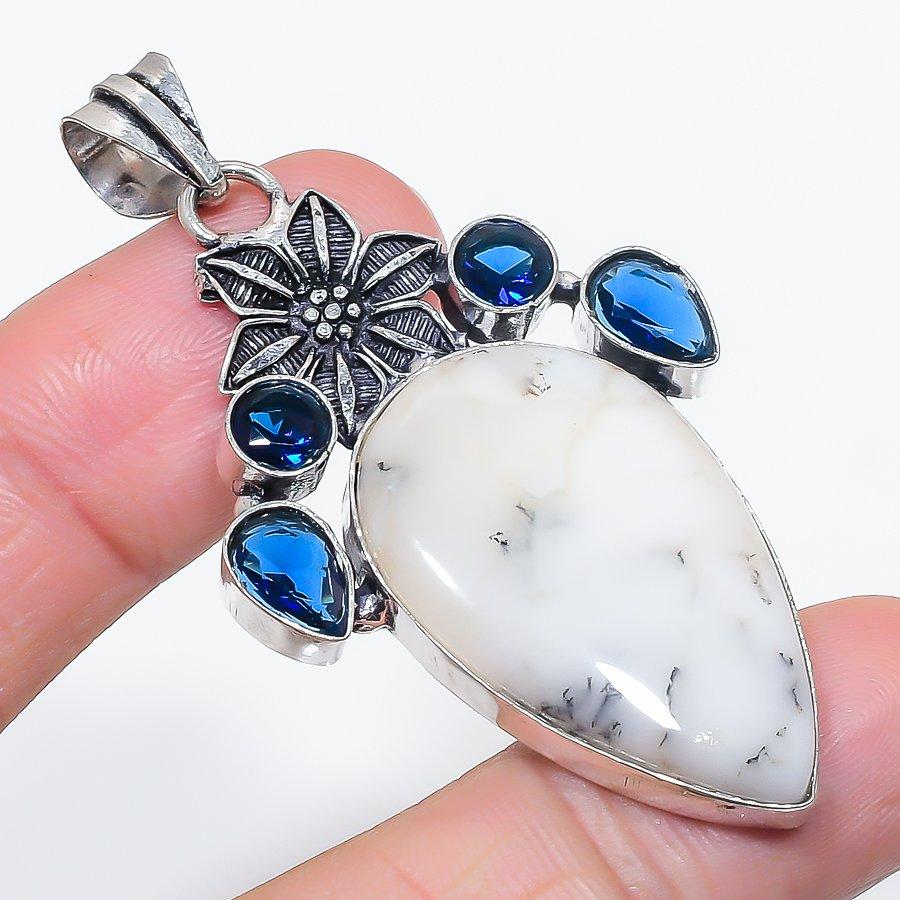 Натуральный дендритовый опал, топаз, ювелирная подвеска из стерлингового серебра 925 пробы, 2,44"