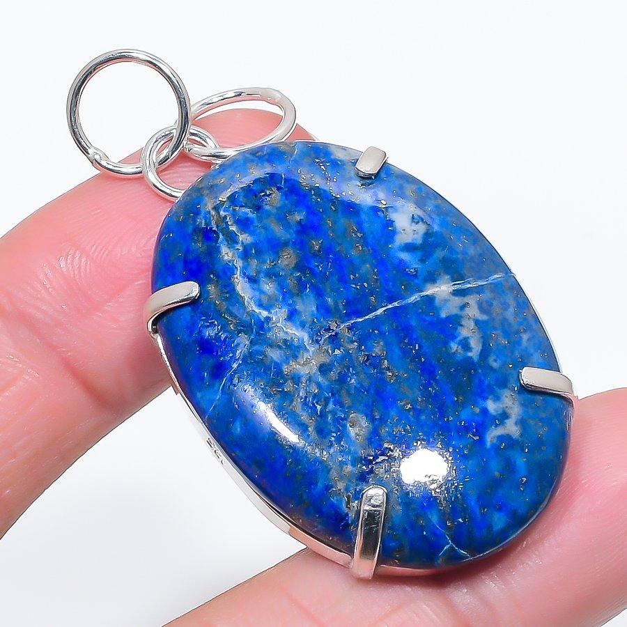 Natural Lapis Lazuli Gemstone 925 Sterling Silver Jewelry Pendant 2.21" J7V77