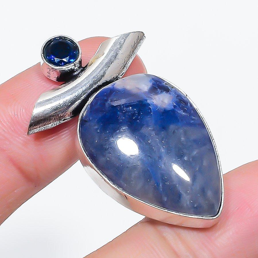 Натуральный содалит, драгоценный камень топаз, ювелирная подвеска из стерлингового серебра 925 пробы, 1,69"
